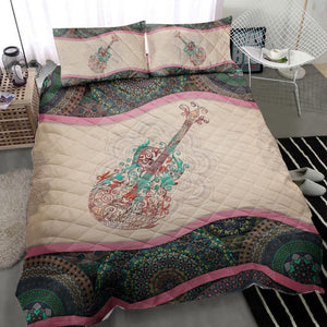 Guitar Quilt Set, Aco Ustic Guitar Mandala Music Theme Guitarist Quilt Blanket With Pillowcases, Quilt Bedding Set
