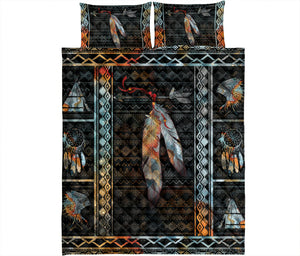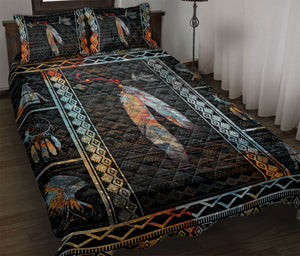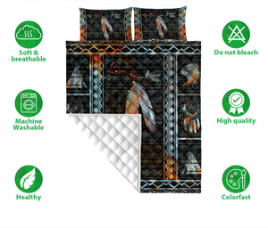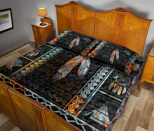 Native American Quilt Set, American Native Indigeno Us Feather Black Quilt Blanket With Pillowcases, Quilt Bedding Set