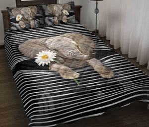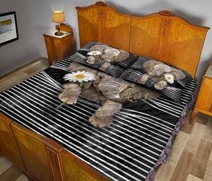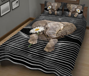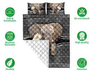 Elephant Quilt Set, Baby Elephant White Daisy Wild Striped Patten Black Quilt Blanket With Pillowcases, Quilt Bedding Set