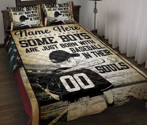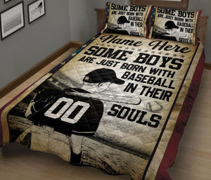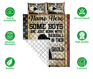 Personalized Baseball Quilt Set, Baseball In Their Souls Batter Quilt Blanket With Pillowcases, Custom Name and Number Quilt Bedding Set, Sports Gifts