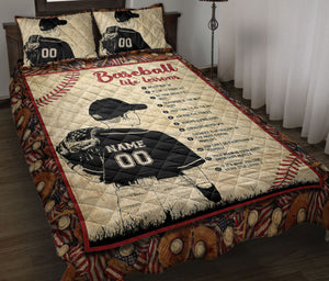 Personalized Baseball Quilt Set, Baseball Lesson Boy Quilt Blanket With Pillowcases, Custom Name and Number Quilt Bedding Set, Sports Gifts