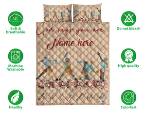Personalized Baseball Quilt Set, Baseball Player God Says You Are Quilt Blanket With Pillowcases, Custom Name Quilt Bedding Set, Sports Gifts