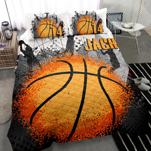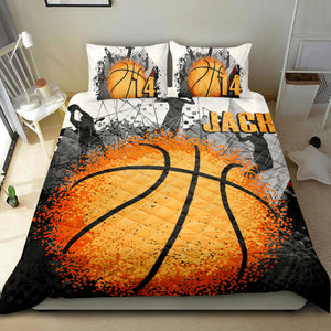 Personalized Basketball Quilt Set, Basketball Ball Splash Black Quilt Blanket With Pillowcases, Custom Name and Number Quilt Bedding Set