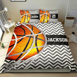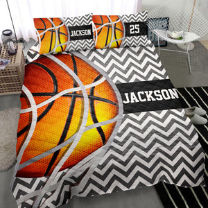 Personalized Basketball Quilt Set, Basketball Ball Zigzag Quilt Blanket With Pillowcases, Custom Name and Number Quilt Bedding Set