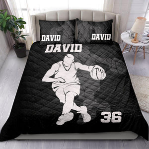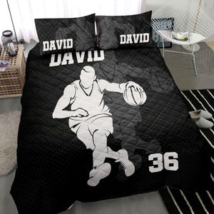 Personalized Basketball Quilt Set, Basketball Boy Black Shadow Quilt Blanket With Pillowcases, Custom Name and Number Quilt Bedding Set
