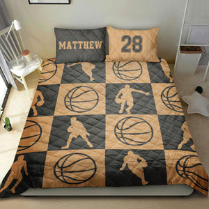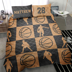 Personalized Basketball Quilt Set, Basketball Player Ball Quilt Blanket With Pillowcases, Custom Name and Number Quilt Bedding Set