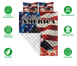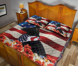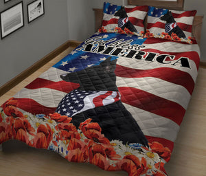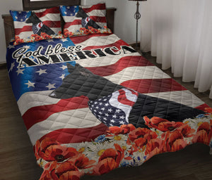 German Shepherd Quilt Set, Black German Shepherd Patriotic Dog God Bless Us Flag Quilt Blanket With Pillowcases, Quilt Bedding Set