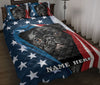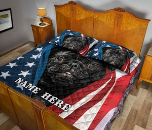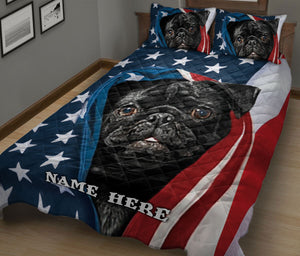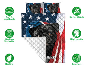 Personalized Pug Quilt Set, Black Pug Patriot American Us Flag Usa Quilt Blanket With Pillowcases, Custom Name Quilt Bedding Set, July 4th Gift
