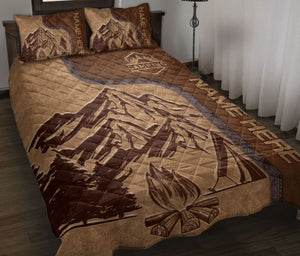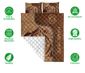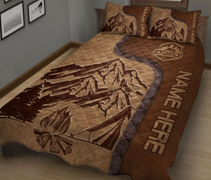 Personalized Camping Quilt Set, Camping Camping Quilt Blanket With Pillowcases, Custom Name Quilt Bedding Set