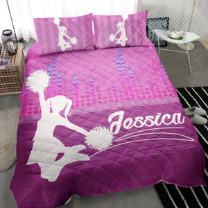 Personalized Cheerleading Quilt Set, Cheerleading Cheerleader Girl Princess Pink Quilt Blanket With Pillowcases, Quilt Bedding Set