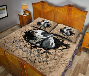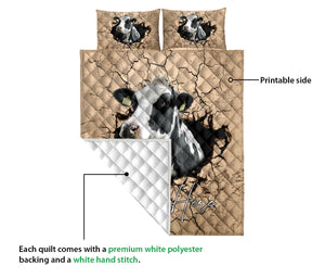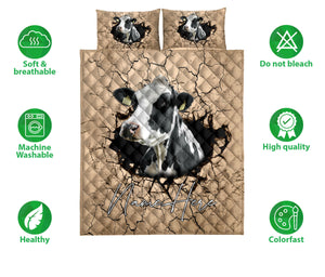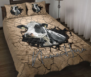 Personalized Cow Quilt Set, Cow Farm Crack Earths Quilt Blanket With Pillowcases, Custom Name Quilt Bedding Set