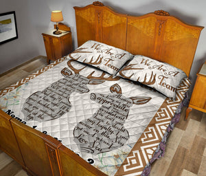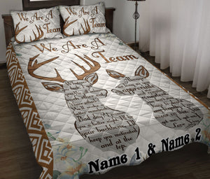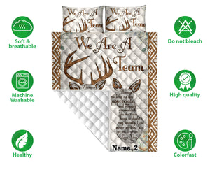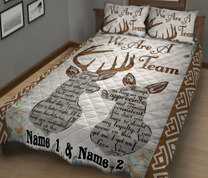 Personalized Deer Quilt Set, Deer We'Re A Team H Usband & Wife Couple Quilt Blanket With Pillowcases, Custom Name Quilt Bedding Set
