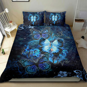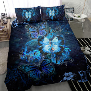 Diabetes Quilt Set, Diabetes Awareness Butterfly Faith Hope Love Blue Quilt Blanket With Pillowcases, Quilt Bedding Set