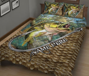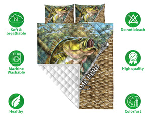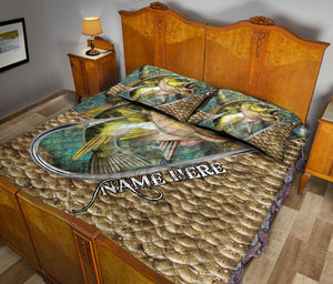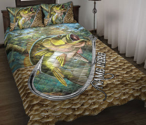 Personalized Fishing Quilt Set, Fishing Big Bass Fish Hook Quilt Blanket With Pillowcases, Custom Name Quilt Bedding Set