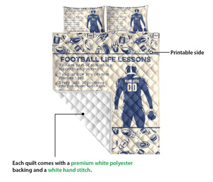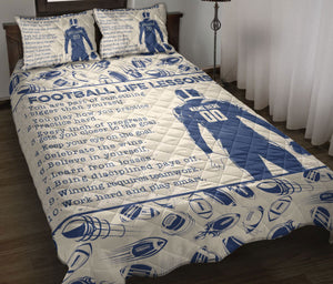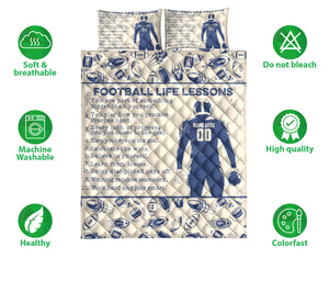 Personalized Football Quilt Set, Football Lessons Beige Quilt Blanket With Pillowcases, Custom Name Quilt Bedding Set