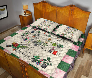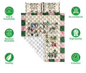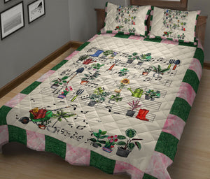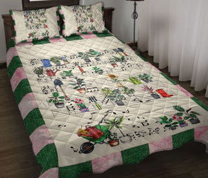 Gardening Quilt Set, Garden Flower Tree Music Note Gardenings Green Beige Quilt Blanket With Pillowcases, Quilt Bedding Set