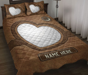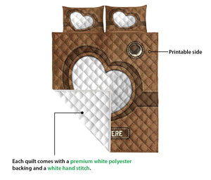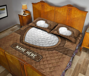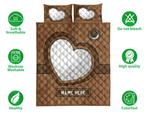Personalized Golf Quilt Set, Golf Heart Quilt Blanket With Pillowcases, Custom Name Quilt Bedding Set