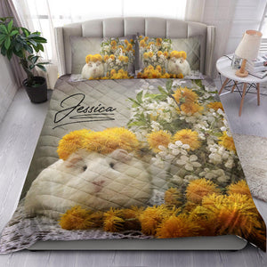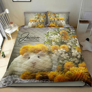 Personalized Guinea Pig Quilt Set, Hamster Guinea Pig Flower Quilt Blanket With Pillowcases, Custom Name Quilt Bedding Set