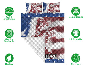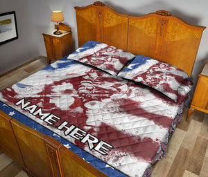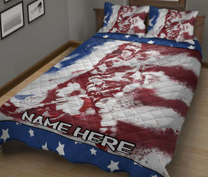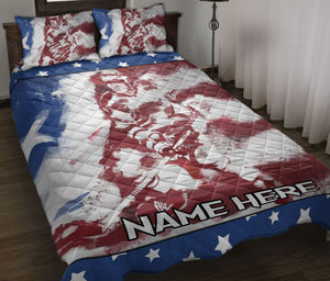 Personalized Hockey Quilt Set, Hockey Player American Us Flag Quilt Blanket With Pillowcases, Custom Name Quilt Bedding Set