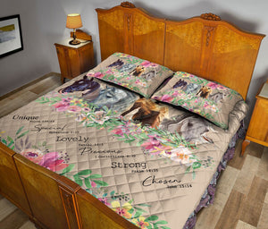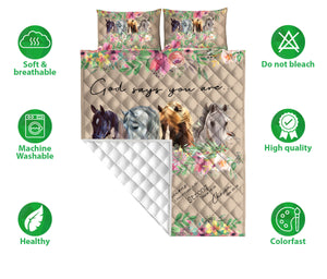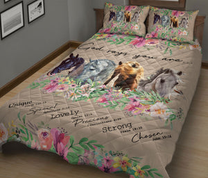 Horse Quilt Set, Horse God Says You Are Flower Floral Quilt Blanket With Pillowcases, Quilt Bedding Set