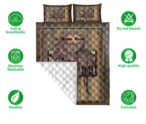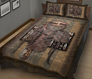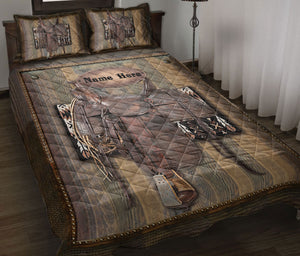 Personalized Cowboy Quilt Set, Horse Saddle Western Cowgirl Cowboy Quilt Blanket With Pillowcases, Custom Name Quilt Bedding Set