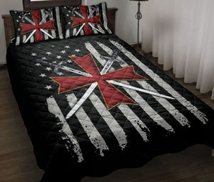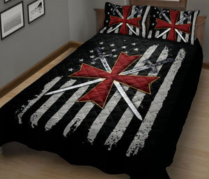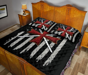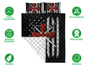Knights Templar Quilt Set, Knights Templar Symbols Sword Us Flag Quilt Blanket With Pillowcases, Quilt Bedding Set