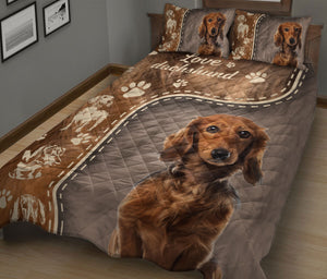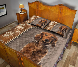 Dachshund Quilt Set, Love Dachshund Weiner Doxie Dog Dog Quilt Blanket With Pillowcases, Quilt Bedding Set