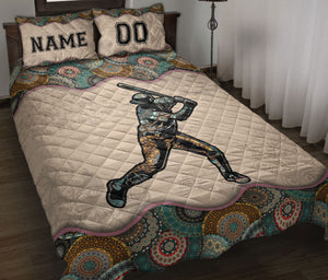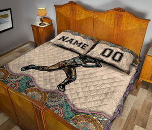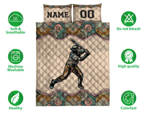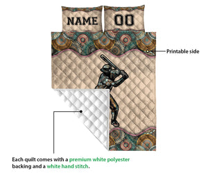 Personalized Baseball Quilt Set, Mandala Baseball Batter Boy Quilt Blanket With Pillowcases, Custom Name and Number Quilt Bedding Set, Sports Gifts