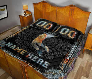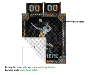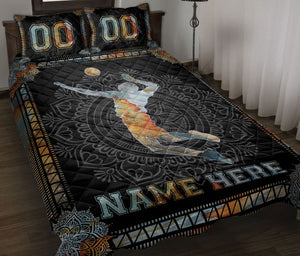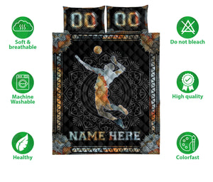 Personalized Volleyball Quilt Set, Mandala Volleyball Boy Black Quilt Blanket With Pillowcases, Custom Name and Number Quilt Bedding Set