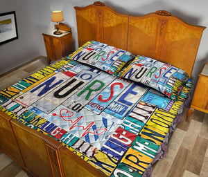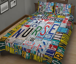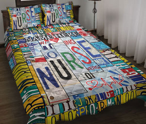 Personalized Nurse Quilt Set, Nurse Nursing Scrub Nurse Quilt Blanket With Pillowcases, Custom Name Quilt Bedding Set