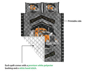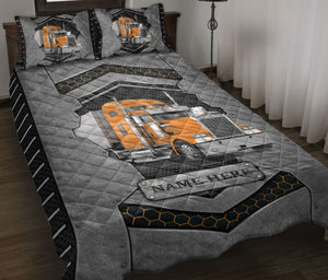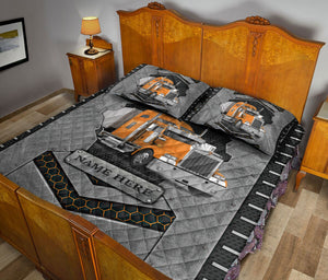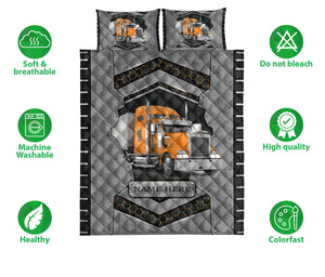 Personalized Trucker Quilt Set, Orange Trucker Truck Driver Carbon Stone Quilt Blanket With Pillowcases, Custom Name Quilt Bedding Set