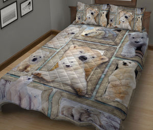 Polar Bear Quilt Set, Polar Bear Frame Patchwork Floral Quilt Blanket With Pillowcases, Quilt Bedding Set