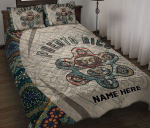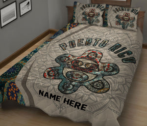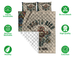 Personalized Puerto Rico Quilt Set, Puerto Rico Proud Puerto Rico Mandala Floral Quilt Blanket With Pillowcases, Quilt Bedding Set