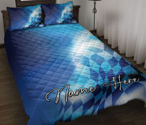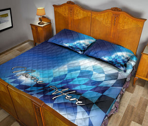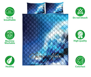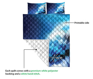 Personalized Racing Quilt Set, Racing Checkered Flag Blue Race Quilt Blanket With Pillowcases, Custom Name Quilt Bedding Set