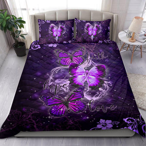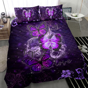 Fibromyalgia Quilt Set, Raise Fibromyalgia Awareness Butterfly Faith Hope Love Purple Quilt Blanket With Pillowcases, Quilt Bedding Set