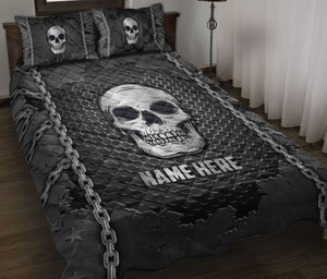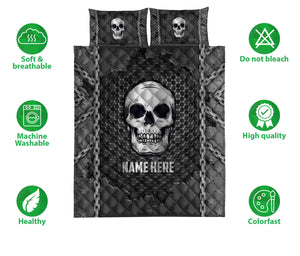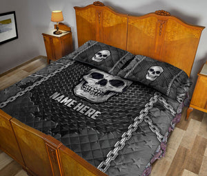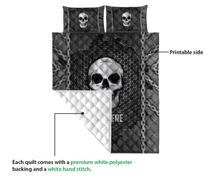 Personalized Skull Quilt Set, Skull Iron Chains Quilt Blanket With Pillowcases, Custom Name Quilt Bedding Set