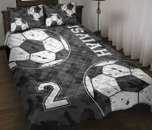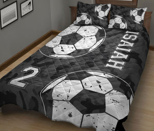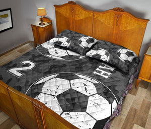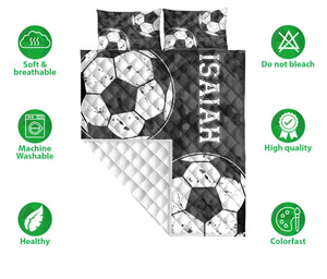 Personalized Soccer Quilt Set, Soccer Ball Black Quilt Blanket With Pillowcases, Custom Name and Number Quilt Bedding Set