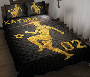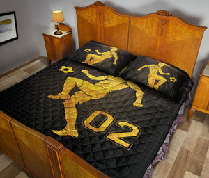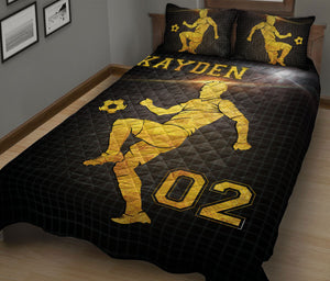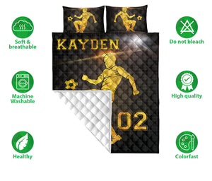 Personalized Soccer Quilt Set, Soccer Player Gold Quilt Blanket With Pillowcases, Custom Name and Number Quilt Bedding Set