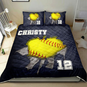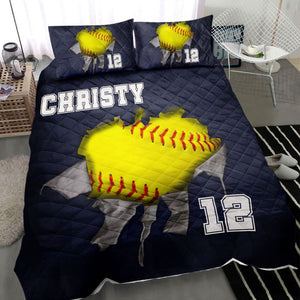 Personalized Softball Quilt Set, Softball Ball Crack Quilt Blanket With Pillowcases, Custom Name and Number Quilt Bedding Set