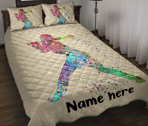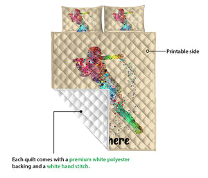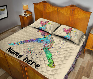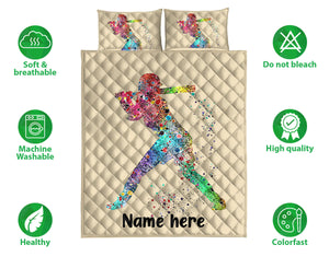 Personalized Softball Quilt Set, Softball Batter Girl Players Quilt Blanket With Pillowcases, Custom Name Quilt Bedding Set