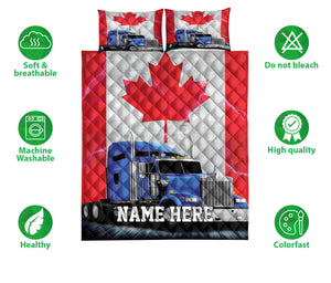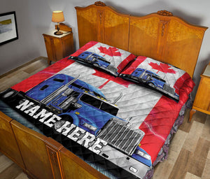 Personalized Trucker Quilt Set, Truck Drivers Trucker Canada Freedom Convoy Quilt Blanket With Pillowcases, Custom Name Quilt Bedding Set