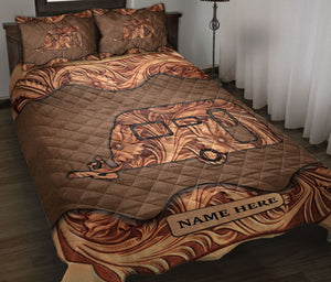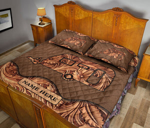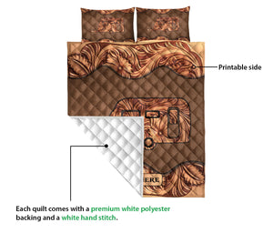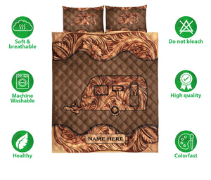 Personalized Camping Quilt Set, Wood Camping Sculptures Quilt Blanket With Pillowcases, Custom Name Quilt Bedding Set