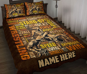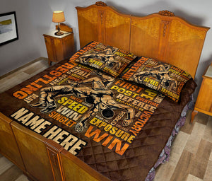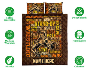 Personalized Wrestling Quilt Set, Wrestler Wrestling Quilt Blanket With Pillowcases, Custom Name Quilt Bedding Set