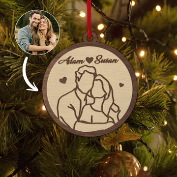 Personalized Couple Layered Wood Ornament, Custom Photo Engagement Christmas Tree Ornament, Married Christmas Home Decor, Wedding Gift